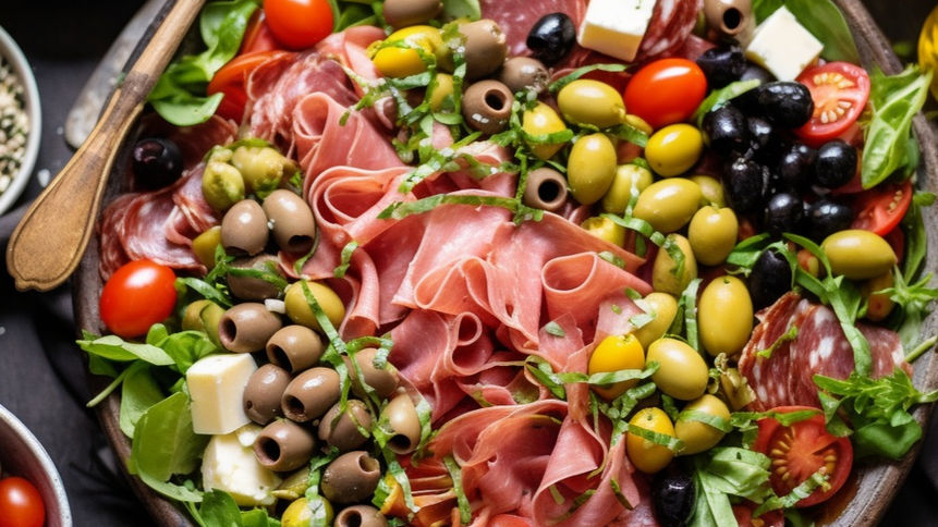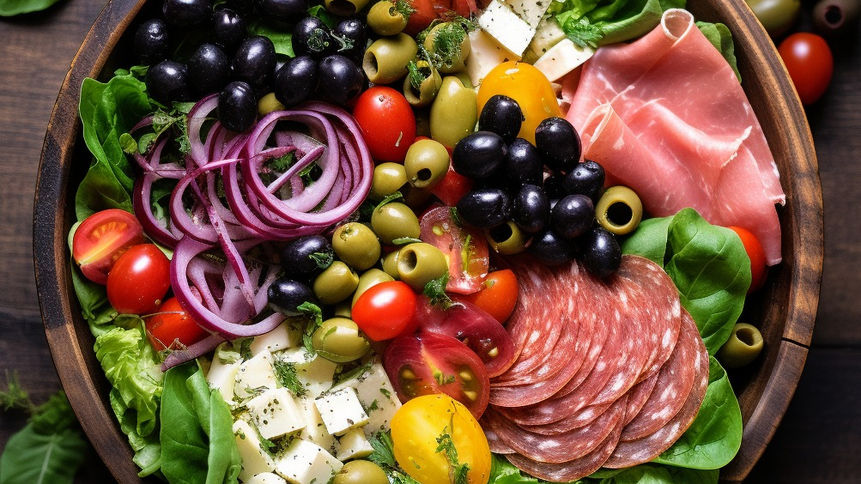 Discover a tantalizing Antipasto Salad that blends vibrant mixed greens with savory ham, zesty salami, and luscious cheese. Topped with olives and cherry tomatoes, this low-carb, high-protein delight is perfect for diabetics and those on the SOZA weight loss program. Let your taste buds embark on a flavorful journey with each crunchy, satisfying bite.